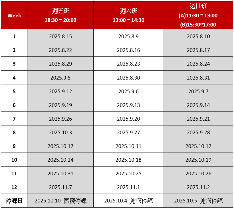 進階英文閱讀班 Level 3 本期上課日期